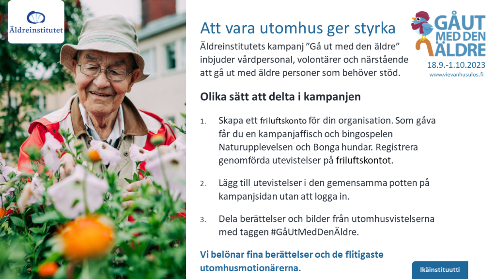 Käytämme evästeitä käyttäjäseurantaan. Hyväksymällä evästeet autat kehittämään Vie vanhus ulos -kampanjaa.