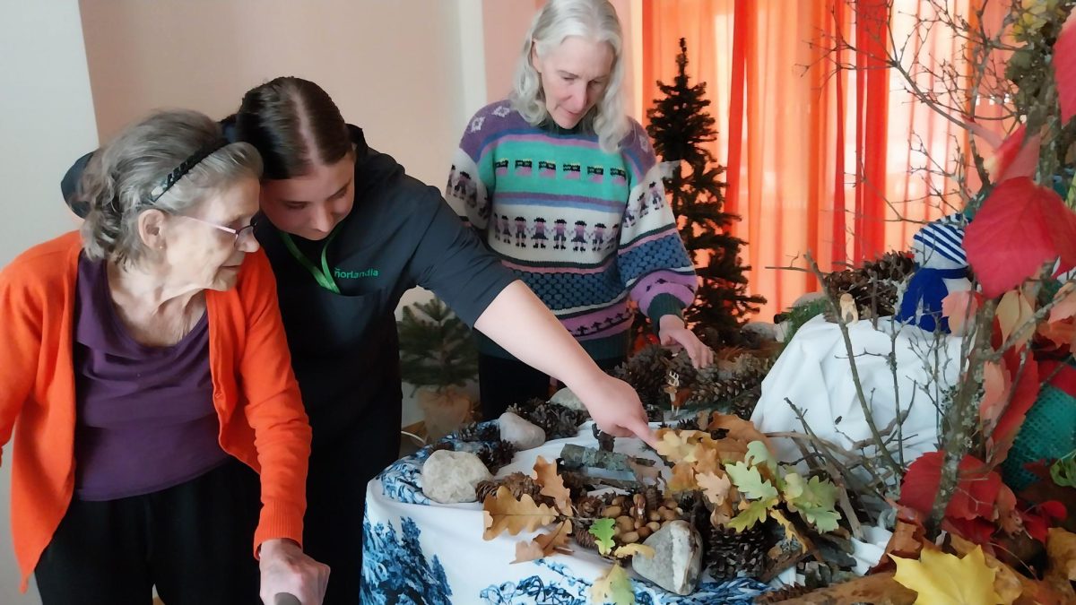 Norlandia Isopakarin asukkaat keräsivät Vie Vanhus Ulos - kampanjan aikana luonnosta syksyn lehtiä, maahan tippuneita oksia, käpyjä ja muuta luonnonmateriaalia. Yhdessä kerätyistä tarvikkeista rakennettiin Vanhustenviikon hyvinvointia ja terveyttä luonnosta teemapäivänä yhteiseen tilaamme minimetsä.